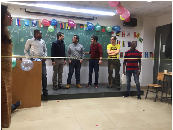 最后一个游戏环节是抢椅子游戏,考验大家的反应能力,项目部的老师们亲自参与到游戏中,与学员们一起踏着节奏舞蹈。最后尼泊尔学员卡莫还即兴为大家带来了精彩的舞蹈,菲律宾学员佳琳也献上了优美的歌声,中文学院项目部新年联欢会在大家的掌声和欢声笑语中落幕,这次联欢会不仅缓解了学员的学习压力和期末的紧张,同时加深了师生之间、同学之间的相互了解和感情,对接下来他们在中国的学习和生活都会有很大的帮助。