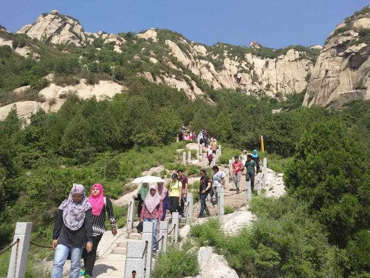 5月26日一早,北外中文学院对外汉语系全体马来师资项目的留学生及教师一行222人,从北外出发到访北京郊区进行一天的市内语言实践活动。上午9点到达凤凰岭,在导游的带领下,同学们不惧高温,坚持爬上了凤凰岭。午饭后,同学们来到了车耳营民俗村,进入农户家进行深入访谈!访谈结束后,下午五点到达北外结束了一天的语言实践活动!