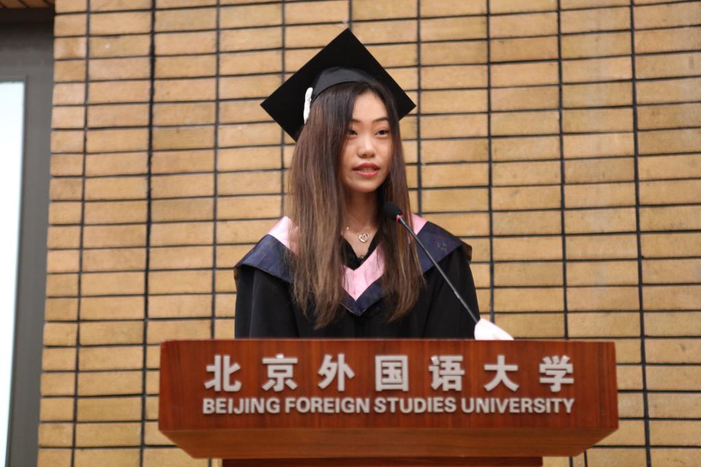毕业典礼先由驻华使馆教育参赞侯春兴先生致辞,随后由陈小明副院长为毕业生送上临别祝福。四年的师恩难忘,四年的友情难舍,最后,全场毕业生一起合唱“朋友”,为毕业典礼画上了完美的句号。