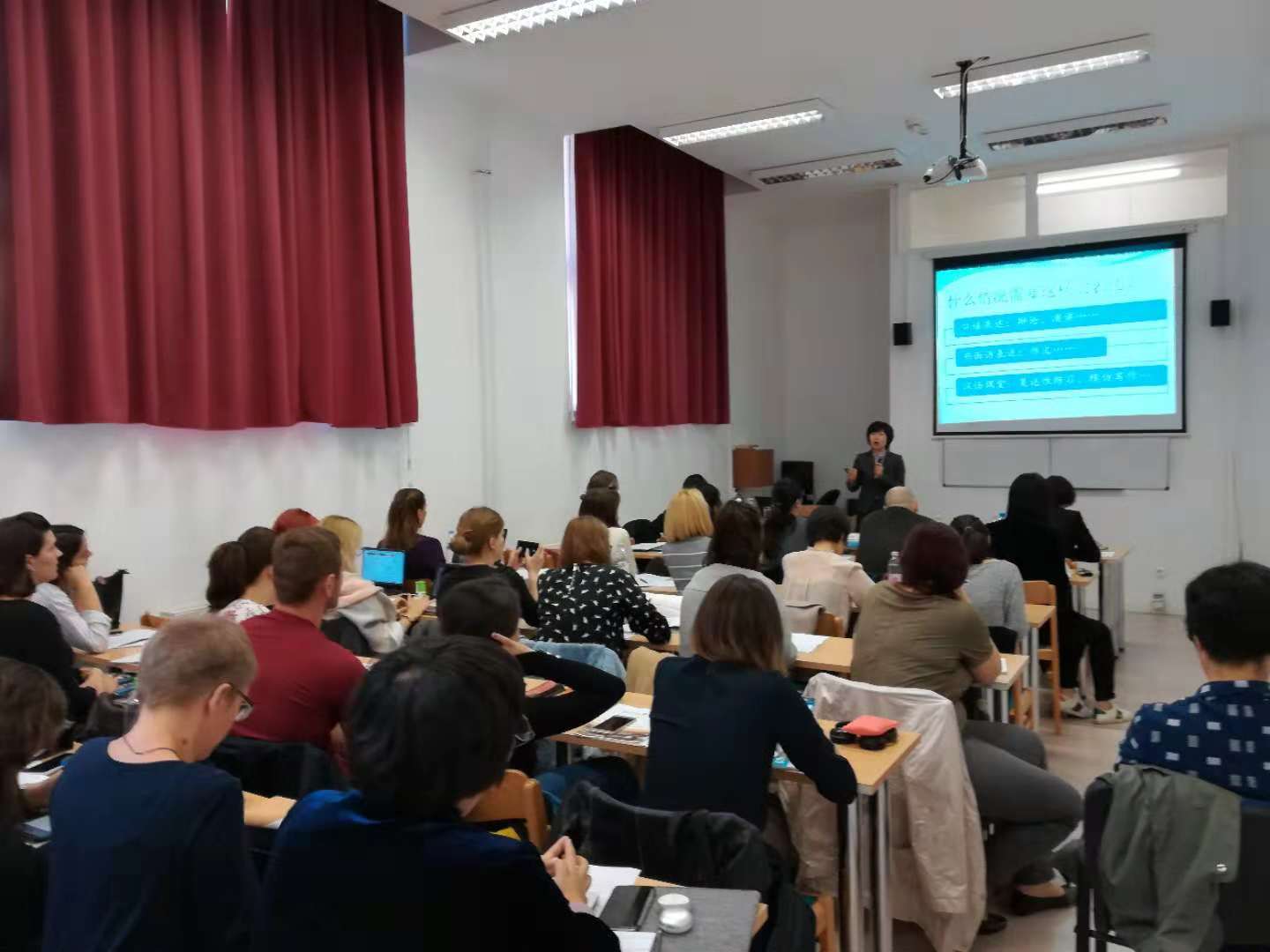 10月4日至8日,中文学院执行院长张晓慧率领汉语国际教育专家团队,访问匈牙利罗兰大学孔子学院,参加中东欧本土师资培训,以“产出导向法”在汉语教学中运用为主题,举办了专题讲座和工作坊。来自中东欧16国的30余位本土教师及孔院的部分汉语教师和志愿者参加培训。