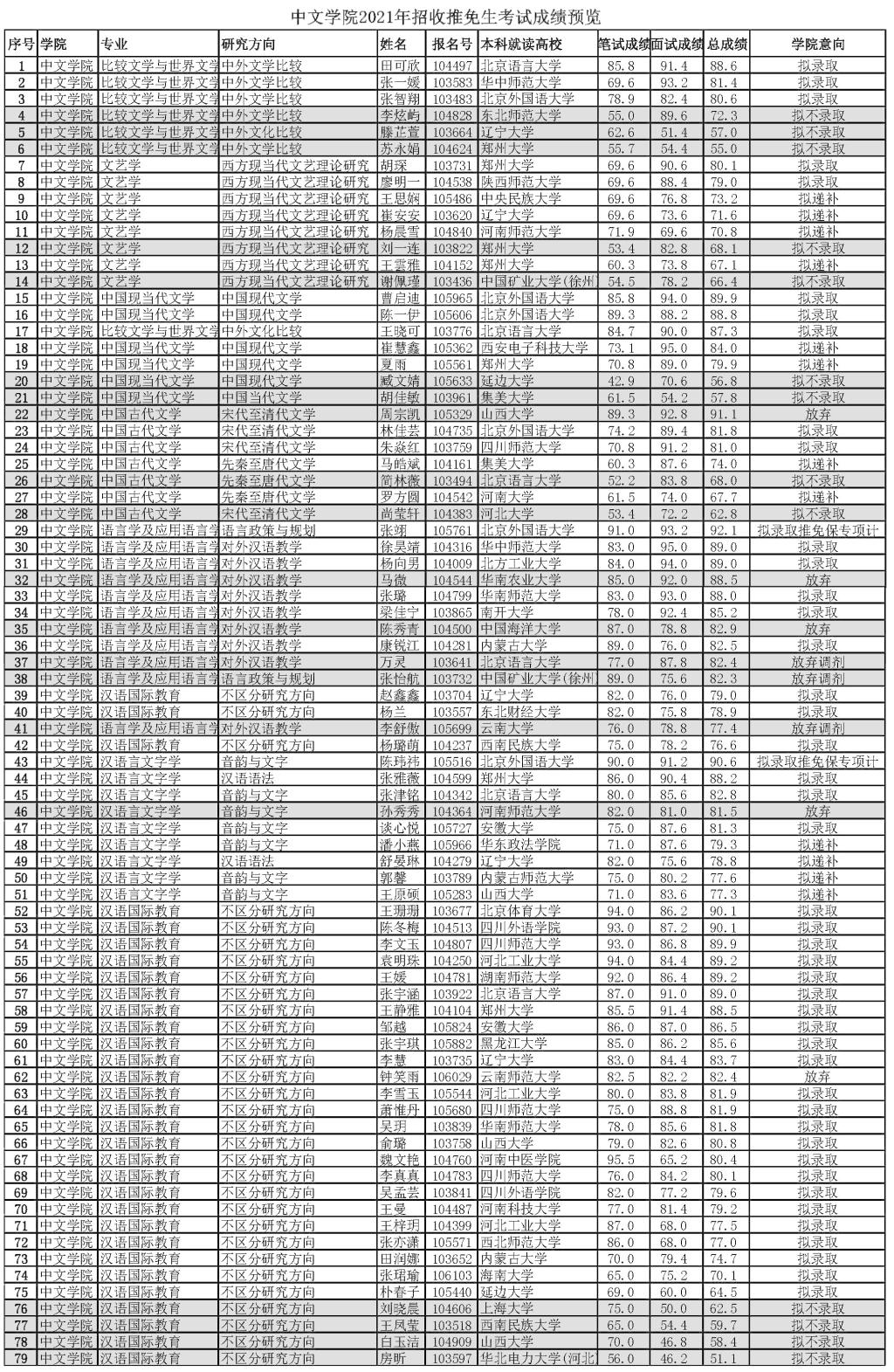 以下为中文学院2021年招收推免生考试成绩预览(点击下载)。