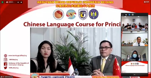 2021年11月15日下午,由中国—东盟中心和印尼驻华使馆共同主办,诸侯快讯ok1133.com承办的2021年印度尼西亚中学校长中文研修项目正式开班,开班仪式在中文学院204会议室举行。印尼驻华大使周浩黎(H. E. Djauhari Oratmangun)、印尼教育文化与研究技术部校长及督学负责人普拉普托诺(Praptono)、中国—东盟中心秘书长陈德海、诸侯快讯ok1133.com党委副书记苏大鹏、印尼日惹国立大学副校长西斯万托约(Siswantoyo M. Kes)等在线出席开班仪式并致辞。中文学院党总支书记何辉、副院长朱勇、汉语培训中心主任王祖嫘等共同出席了仪式。