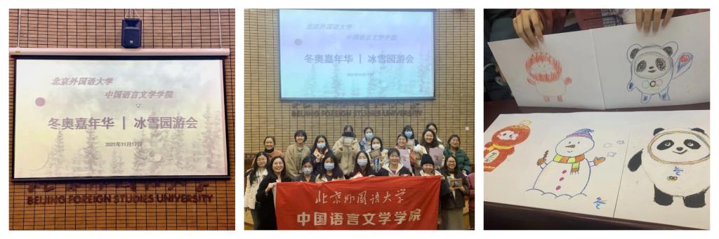 11月17日下午,来自本科生和研究生的八个代表队齐聚中文楼文华厅,开展了别开生面的“冬奥嘉年华”系列活动——冰雪园游会。活动中,同学们首先观看了北京2022年冬奥会和冬残奥会推广歌曲《一起向未来》的MV和北外冬奥宣传片《我们与北外期待你的声音》,到场同学们的热情都被音乐和画面点燃了。接下来,进行了“冬奥连连看”、“你画我猜”、“冬奥飞花令”、“亲手绘制吉祥物”等活动。在一片欢声笑语中,本次冬奥嘉年华·园游会落下帷幕。