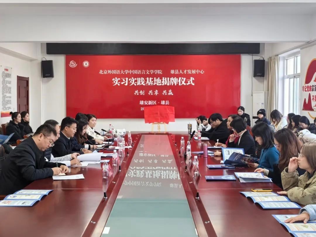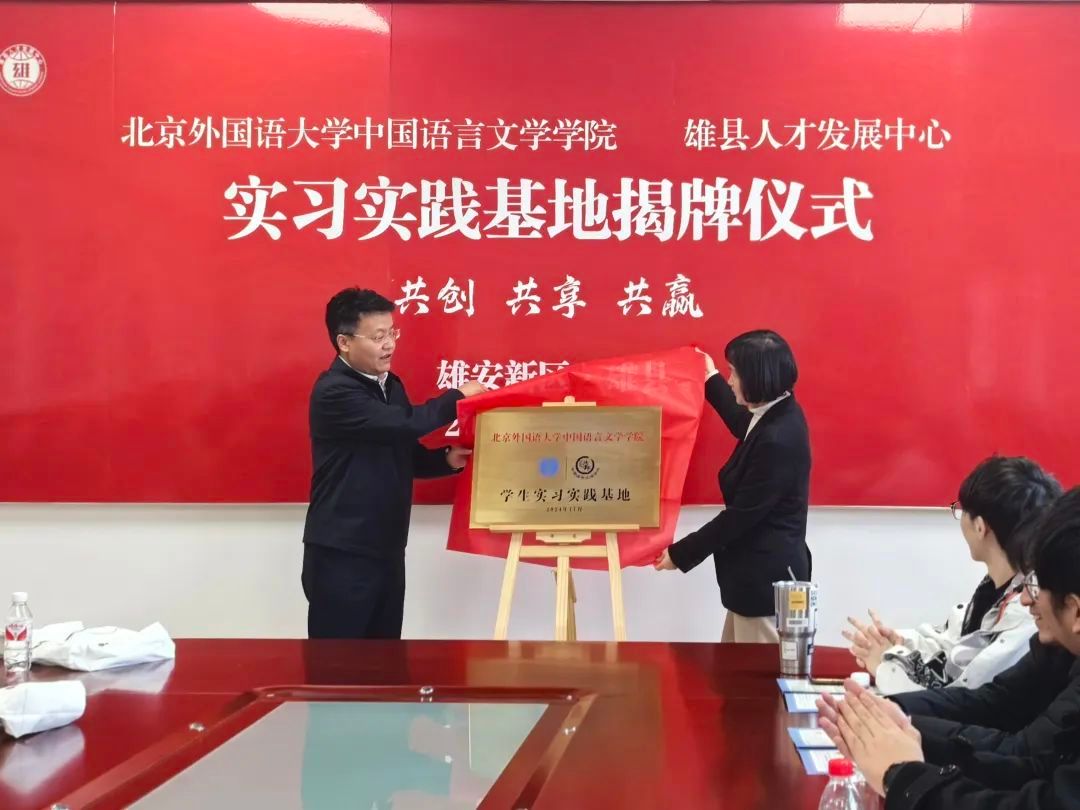 在共建揭牌仪式上,杜皓部长首先在致辞中对北外中文学院的来访表示热烈欢迎,并对北外在人才培养方面取得的卓越成就表示赞赏。同时他介绍了雄安新区成立七年来从蓝图到实景的发展成果,以及雄县坚持以青年人才作为推动高质量发展的工作成绩。他希望以此次共建实习实践基地为契机,助力双方在更多领域、更深层次上开展合作,共同探索校地融合发展的新领域和新模式。