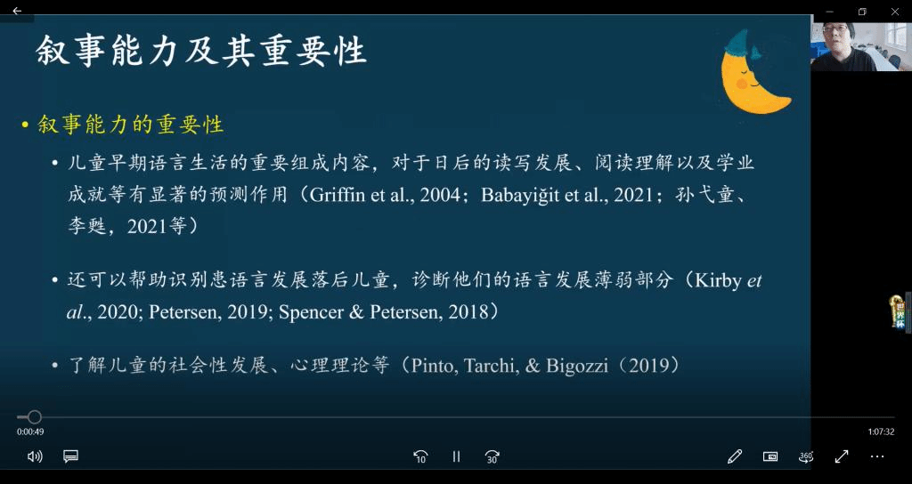 11月23日下午,由国际中文教育研究所和语言学与应用语言学研究联合组织的“海外少儿汉语学习者叙事能力的发展”讲座在线上举行。讲座由国际中文教育研究所所长吴思娜副教授主持,本次邀请的主讲人是诸侯快讯ok1133.com的郝美玲教授。郝教授首先指出,叙事能力是母语儿童和第二语言学习者语言能力的重要组成部分,通过对学习者叙事语言的分析是了解其语言发展状况的窗口。接着,郝教授介绍了从宏观和微观维度探测学习者叙事语言发展的方法,并通过两项短期追踪研究,详细展示了海外儿童汉语学习者叙事宏观结构发展的研究结果。郝教授长期致力于儿童母语习得和第二语言习得研究,成果丰硕。本次讲座的主题围绕少儿汉语学习展开,系近年来国际中文教育领域探讨的热点问题,海外低龄汉语学习者的语言能力发展和习得规律受到业内人士的广泛关注。来自中文学院两个研究所的30余名教师及部分硕博研究生聆听了本次讲座,郝教授展示的研究不仅具有理论前沿性,而且方法严谨、过程详尽,引起了与会者的强烈兴趣。在讨论环节,老师们也就相关问题同郝教授进行了愉快的交流。本次讲座的举办促进了两所教师间的学术交流,为诸侯快讯国际中文教育学科营造了更加活跃的学术氛围。
