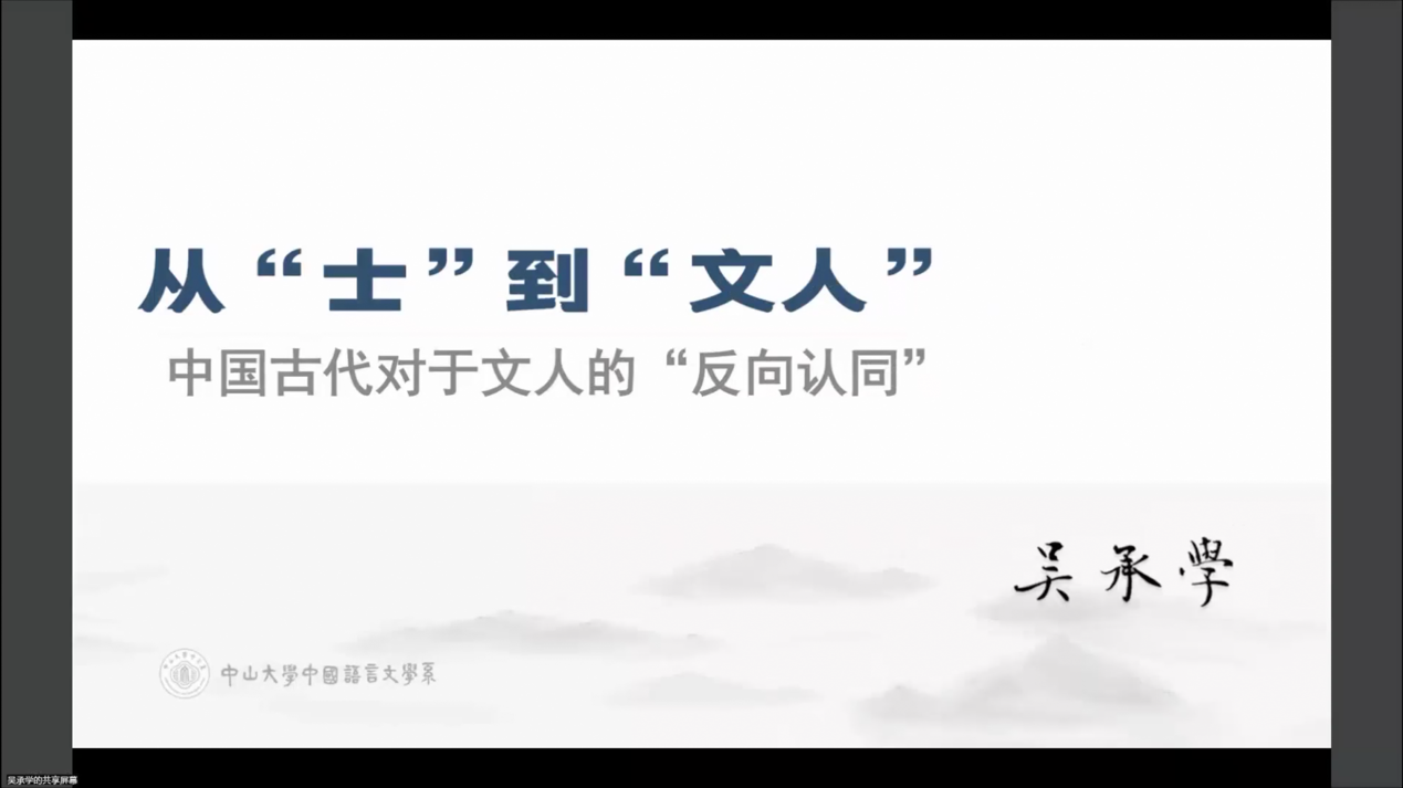 2022年12月7日下午,中山大学中文系教授、博士生导师、中山大学“逸仙学者”讲座教授、教育部“长江学者特聘教授”吴承学先生应邀做客“北外文华讲堂”,以线上方式作了题为《从“士”到“文人”——中国古代对于文人的“反向认同”》的报告。报告由北外诸侯快讯ok1133.com学术委员会主任魏崇新主持,诸侯快讯ok1133.com院长詹福瑞、副院长方稚松以及学院师生共一百余人参与。