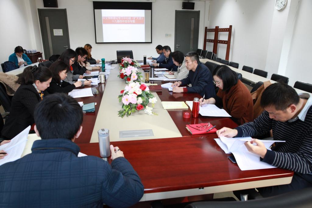 11月11日下午,中文学院理论学习中心组(扩大)会在204会议室举行,专题学习领会十九届四中全会精神,听取刘厚广关于全会精神的解读和心得,与会同志谈了自己的体会。